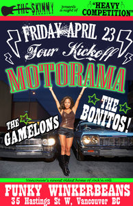 I entered Pat's Pub on Friday March 12th in the year of our lord 2010 to experience Motorama for the first time. There were three bands in the evening and Motorama opened. When I say opened, I mean OPENED. This power trio of punk dug into their instruments and ripped a hole in the time/space continuum, plastering the audience with a frenzy of pure unadulterated talent. Who are these gods? He who is known as Marcus, plays lead like an articulate master and screams into the mic like he's channelling Bonn Scott, Sid Vicious and David Bowie. He who is known as Bryan, hammers at the bass with a razor-sharp intensity and provides perfect vocal blending to Marcus' inspired lyrics. He who is known as The Bertman sets the stage on fire as a rhythm obsessed beast thundering upon the drums with such beautifully consummate abandon that I can only describe him as the stripped-down lean-and-mean Peart-of-punk who hits the mic with the intensity of Animal. If you happen to already be, or you are thinking of sampling what is known as punk, Motorama provides the distilled version. The fine wine of rebellion. Their immense talent and wealth of musical experience was a breath-taking joy to witness and the driving nature of their powerful show is the only way to mosh. Motorama is the ardent punker's Grey Poupon, something to crave, something to savour and definitely something to remember. As an end note, I don't remember the other bands playing that night.