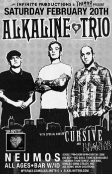 Alkaline Trio’s legacy harkens back to 1997, when Matt Skiba, a bike messenger from working class Chicago ‘burb McHenry, gave up the drums for the guitar and began his quest for the perfect balance of lyrical hell and pop heaven. He and fellow messenger / drummer Glenn Porter and bassist Rob Doran would debut as Alkaline Trio for the Sundials 7”. Dan Andriano replaced Doran prior to the For Your Lungs Only EP, adding a second voice and songwriting style that complemented and contrasted with Skiba’s, and the signature Alkaline Trio sound was born.