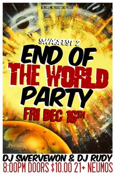 If the world ended tomorrow, what would you do tonight? What would you wear? How hard would you go? This is the attitude MWC productions is bringing to Neumo’s on December 16th. Take any pre-conceived notion of a holiday party you have and throw it away. Right now. Get ready, this will be one of the wildest parties you’ve ever been to. This is your party, invite whoever you want. Wear whatever you want (costumes/theme of your choice mandatory) Performances by DJ Swervewon and Rudy will undoubtedly make December 16th the most ridiculous bang out of 2011. Tickets will be available at the door night of. If you have any questions, send them to
