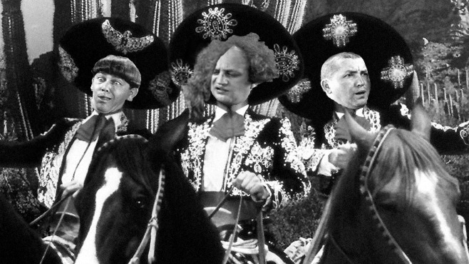 "Los Tres Chiflados were born when a star from the Andromeda galaxy was struck with the force of a nearby Hyper-Nova, sending a rouge-comet faster than light toward the Milky Way galaxy. The gravitational pull of the sun pulled it toward its solar system. At the time the planets were aligned in such a way the the comet headed straight for earth. It broke into three pieces while entering the atmosphere, then the three pieces all fell into different dormant volcanoes. Over millions of years the bacteria evolved, and the volcanoes became active again. They all erupted at the same time, and it increased the growth of the single celled organism, turning it into a human-looking...thing. It sent the three now human-looking creatures into Mexico, were they would reek chaos and Minutemen music for centuries to come...."