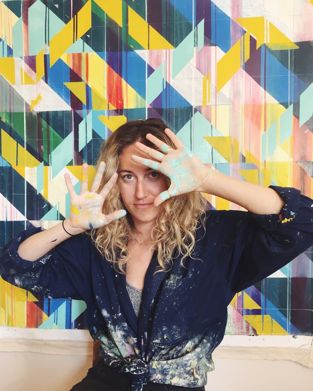 Each of Taryn’s paintings begin with a neatly planned grid, and through the performative process of addition and subtraction of paint, repeating patterns, techniques and colours, each grid is built up, broken down, resulting in a completely unique piece - often challenging the notion of a “finished” artwork.
