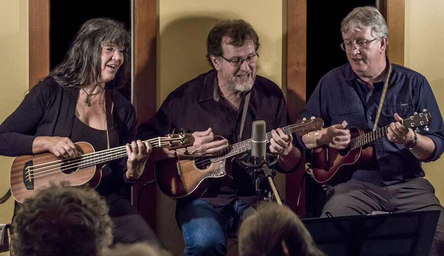 Bryon Thompson is on Baritone Ukulele, Clayton Long on Tenor Ukulele and Freda Eckstein on Bass and Tenor Ukuleles. Together as “Uke’s Misbehavin’” these three will share with you their love of Swing music and Jazz Harmonies through their combined talents. You’re sure to enjoy the stories, songs, solos and arrangements they have in store when they get to “Misbehavin” for you! We’re sure your previous impressions of the UKE will never be the same again!