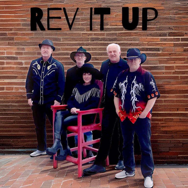 Bill Fellows (Billy Ray), lead vocals and acoustic guitar is joined by Laura Anderson-Brick (Squeezy), vocals, electric accordion who adds a whole array of orchestral sounds including piano, organ, strings, horns and synth — John Gamache (Rat Rod Johnny), vocals, electric lead guitar — Dave Mortensen (Dusty Dave), vocals, bass and Billy Bews (Rock a Billy Bews), drums. Rev It Up chooses their sets based on venue and audience demographics, which is why they can play a wide variety of festivals and special events. The band is fully sound and light equipped!