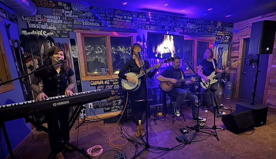 Born out of Canmore’s open mic circuit in 2023, REWD is what happens when four music-loving locals decide to see what happens if they actually rehearse. With Rose on piano, acoustic guitar and vocals; Emily on banjo and vocals; Wendy holding down the bass (and running the lights like a wizard); and Dave on acoustic guitar, piano, vocals and stompbox, REWD stirs together folk, rock, pop and indie into a tight, harmony-rich sound.