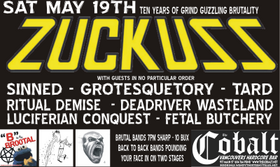 10 YEARS OF ZUCKUSS....: Zuckuss, luciferian conquest, Sinned, TARD, Dead River Wasteland, Grotesquetory, Fetal Butchery @ The Former Cobalt Dec 31 1969 - Jan 11th @ The Former Cobalt
