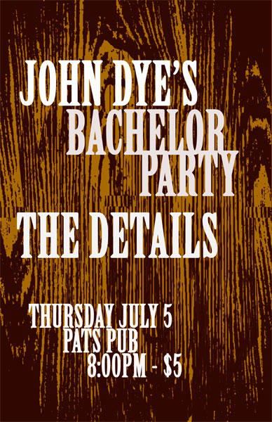 VANITY PRESENTS: John Dye's Bachelor Party & The Details (from winnipeg): ryan walter wagner, The Details @ Pat's Pub Jul 5 2007 - Feb 22nd @ Pat's Pub