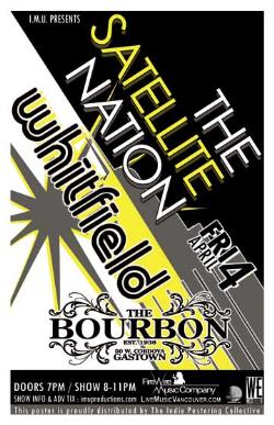 . Friday, April 4th I.M.U. presents The SATELLITE NATION & WHITFIELD @ The Bourbon, 50 West Cordova . Doors 7pm . Show 8-11pm sharp / Cover $10 with flyer or purchase advance tickets online @ http://www.imuproductions.com . $12 @ the door