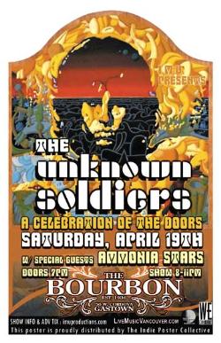 . Saturday, April 19th I.M.U. presents The UNKNOWN SOLDIERS Doors Tribute w/ special guests AMMONIA STARS @ The Bourbon, 50 West Cordova . Doors 7pm . Show 8-11pm sharp / $10 Advance - Purchase advance tickets online @ http://www.imuproductions.com