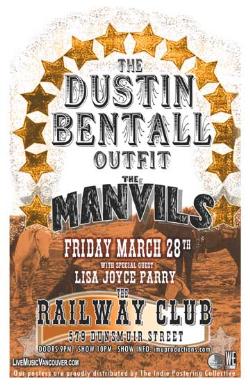 . Friday, March 28th I.M.U. presents The DUSTIN BENTALL Outfit, The MANVILS & LISA JOYCE PARRY @ The Railway Club, 579 Dunsmuir Street . Cover $12