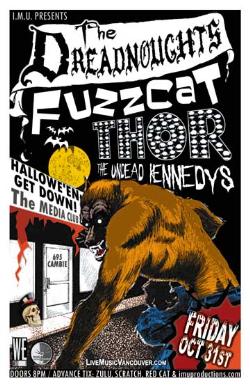 . Friday, Oct 31st I.M.U. presents HALLOWE'EN GET DOWN! w/ The DREADNOUGHTS, FUZZCAT, THOR & The UNDEAD KENNEDYS @ The Media Club, 695 Cambie . Doors 8pm / Purchase advance tix @ Zulu, Scratch, Red Cat Records & online @ imuproductions.com