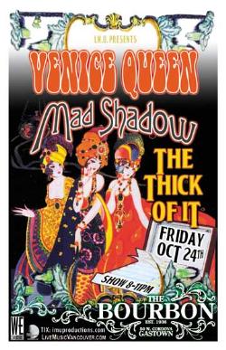 . Friday, Oct 24th I.M.U. presents VENICE QUEEN, MAD SHADOW & The THICK OF IT . Early Show 8-11pm @ The Bourbon, 50 West Cordova . Early show 8-11pm sharp - Purchase advance tickets online @ imuproductions.com