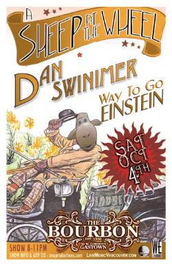 . Saturday, Oct 4th I.M.U. presents A SHEEP AT THE WHEEL, DAN SWINIMER & WAY TO GO EINSTEIN @ The Bourbon, 50 West Cordova . Early show 8-11pm sharp / Purchase advance tickets online @ www.imuproductions.com