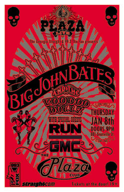 . Thursday, Jan 8th The Plaza, Georgia Straight & 99.3 CFOX present BIG JOHN BATES & THE VOODOO DOLLZ w/ RUN GMC @ The PLAZA, 881 Granville St. . 9pm doors / Tix at the door . 19+