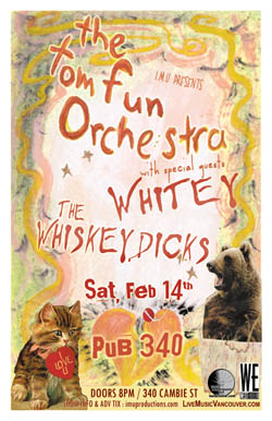 . Saturday, Feb 14th IMU presents The TOM FUN ORCHESTRA Valentine's Day Hootenanny w/ special guests The WHISKEYDICKS & WHITEY @ PUB 340, 340 Cambie Street . Doors 8pm / Purchase advance tickets online @ www.imuproductions.com