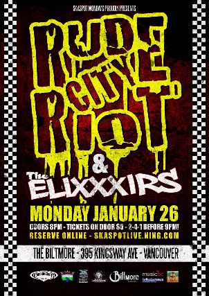 Join exciting new Power-Ska Band "Rude City Riot" and Bobbi Jo Moore and the Elixxxirs as we tip our pork pie hats to all the great live ska and reggae music we have heard and seen these past months.