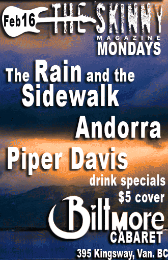 The SKinny Magazine Mondays presents: The Rain And The Sidewalk, Andorra, Piper Davis @ The Biltmore Cabaret Feb 16 2009 - Jan 1st @ The Biltmore Cabaret