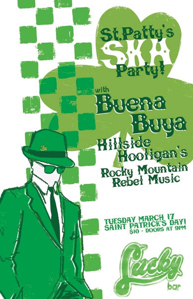 SAINT PATTY'S SKA PARTY!!!: Buena Buya, Hillside Hooligans, Rocky Mountain Rebel Music @ Lucky Bar Mar 17 2009 - Feb 24th @ Lucky Bar