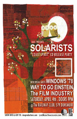 . Saturday, April 4th IMU presents SOLARISTS CD Release Party with special guests WINDOWS 78, WAY TO GO EINSTEIN & The FILM INDUSTRY @ The Railway Club, 579 Dunsmuir