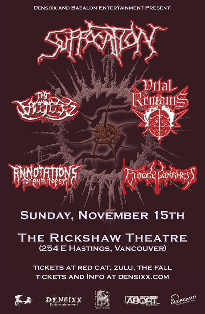 The most consistently heavy progenitors of death/grind will be hitting Vancouver on their Fall mini-tour in support of their latest studio release, "Blood Oath". Featuring four heavy support acts in Vancouver's newest live venue, this show is going to destroy the weak. Tickets available online, and in stores by Monday Sept 21st.