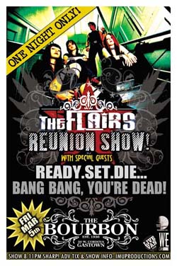 The FLAIRS ONE NIGHT ONLY REUNION SHOW! w/ special guests READY.SET.DIE & BANG BANG, YOU'RE DEAD! Early show 8-11pm sharp @ The Bourbon, 50 West Cordova