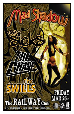 . Friday, March 26th IMU presents MAD SHADOW, The SICKS, The CHASE & The SWILLS @ The Railway Club, 579 Dunsmuir . Doors 8pm / Cover $10 @ the door