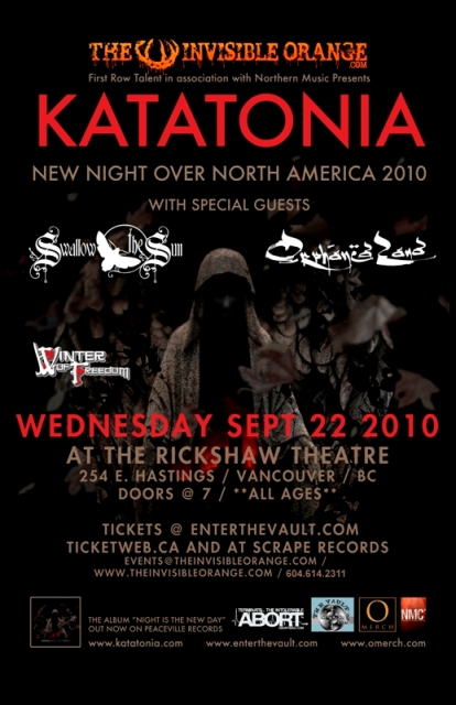 KATATONIA, ORPHANED LAND, Swallow The Sun, Winter Of Freedom @ Rickshaw Theatre Sep 22 2010 - Feb 5th @ Rickshaw Theatre