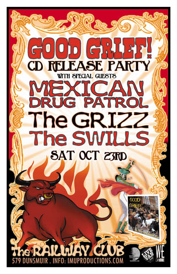 . Saturday, October 23rd IMU presents GOOD GRIEF! CD Release Party w/ special guests The GRIZZ, MEXICAN DRUG PATROL & The SWILLS @ The Railway Club, 579 Dunsmuir . Doors 9pm