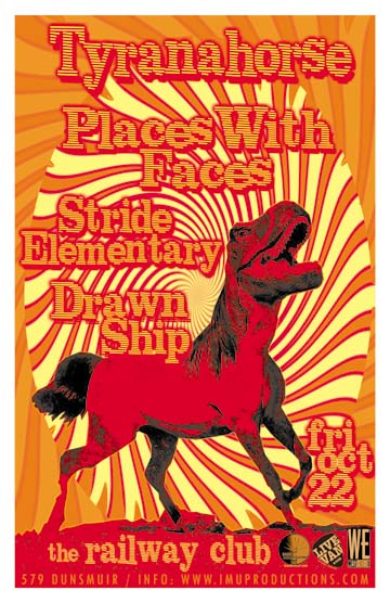 . Friday, October 22nd IMU presents TYRANAHORSE, PLACES WITH FACES, STRIDE ELEMETARY & DRAWN SHIP @ The Railway Club, 579 Dunsmuir . Doors 9pm
