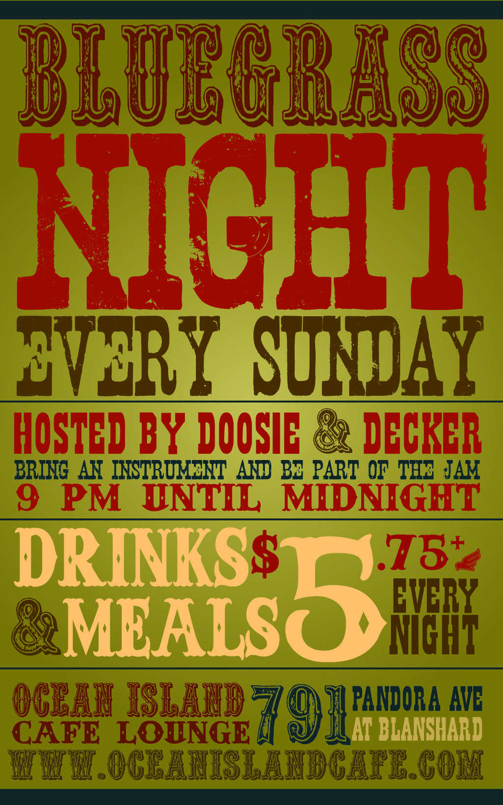 Bluegrass Sunday @ Ocean Island: Stowaways Duo @ Ocean Island Lounge Sep 18 2011 - Jan 12th @ Ocean Island Lounge