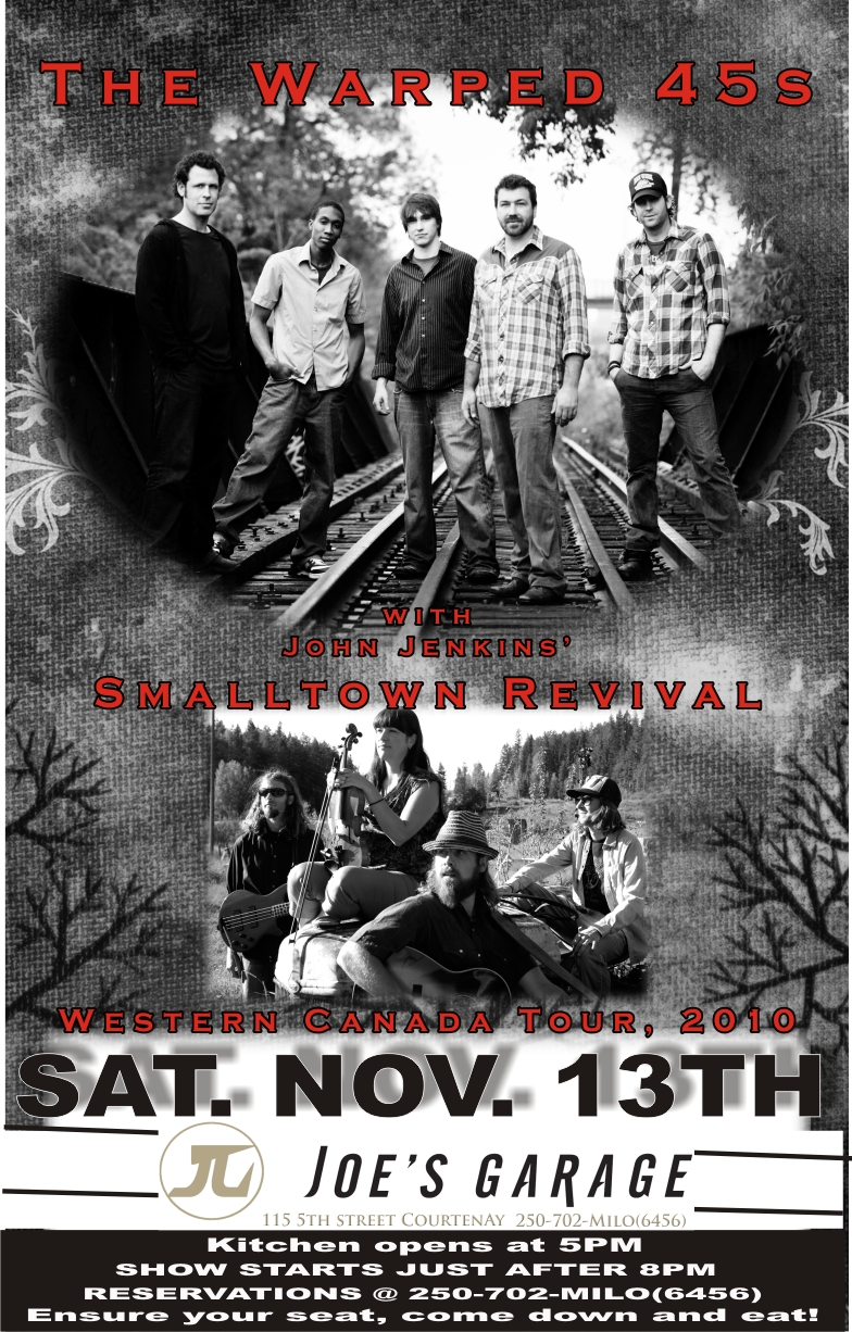 Toronto roots rock band The Warped 45s were the winners of last year's NXNE $10,000 fan choice award. Their debut full length CD "10 Day Poem for Saskatchewan " came out Sept, 2009 to critical acclaim, charted on College radio, continues to be in rotation on CBC ONE, TWO and THREE as well as multiple commercial stations across the country. The record made Exclaim's top ten Wood, Wire and Whiskey list and was recently nominated for Polaris consideration by Brian Acker (Hero Hill) and Bruce Leperre (CKDM). The band spent this past year touring as much as possible, playing shows with favorite bands Elliott Brood, Drive By Truckers, Justin Rutledge, United Steal Workers of Montreal, The Beauties, Deer Tick, T. Nile and more. The summer festival list included The Hillside Music Festival and the band was just showcase winners at the OCFF conference in Ottawa. The Warped 45s are hitting the road for one last tour before settling into the studio with producer John Critchley (Dan Mangan/Elliott Brood) to record their next album, January, 2011.