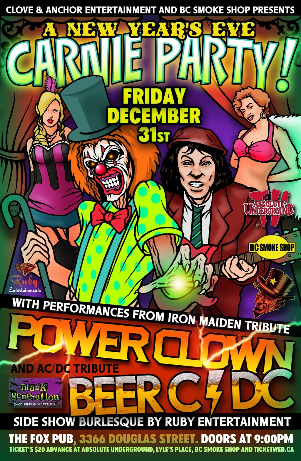 New Years Eve Carnival Party: Power Clown, BEERC / DC, Burlesque by Ruby Entertainment @ The Fox Pub Showroom Pub Dec 31 2010 - Feb 18th @ The Fox Pub Showroom Pub