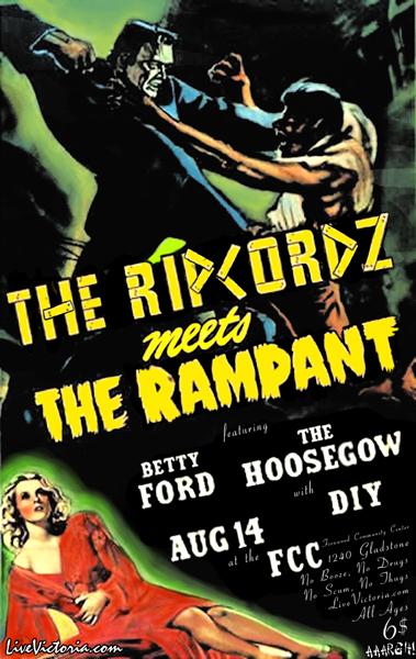 Both the Hoosegow & the Ripcordz are set to play early, as they've an evening show to make. The rest of the night will seep steadily downhill, as shit tends to, with Betty Ford & the Rampant, as well as the entirely lovable DIY.
