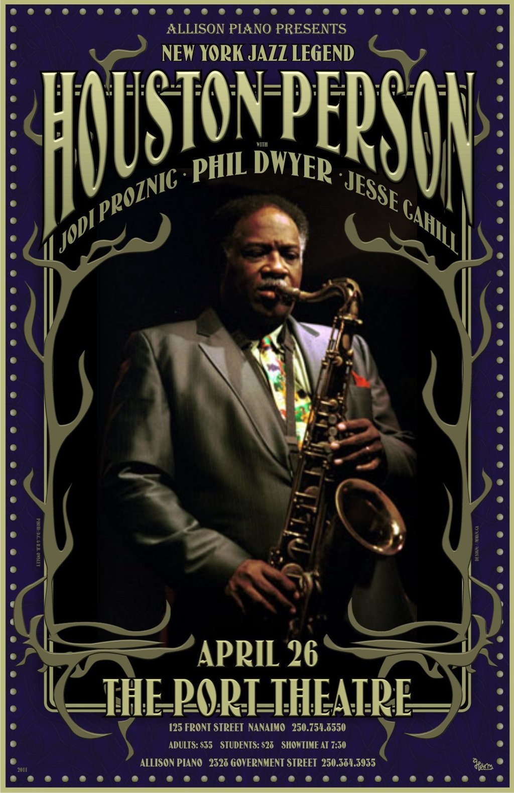 New York Jazz Legend Houston Person, Soulful melodic jazz at it's finest...: Houston Person, Phil Dwyer , Jody Proznic, Jesse Cahill @ The Port Theatre Naniamo Apr 26 2011 - Jan 11th @ The Port Theatre Naniamo