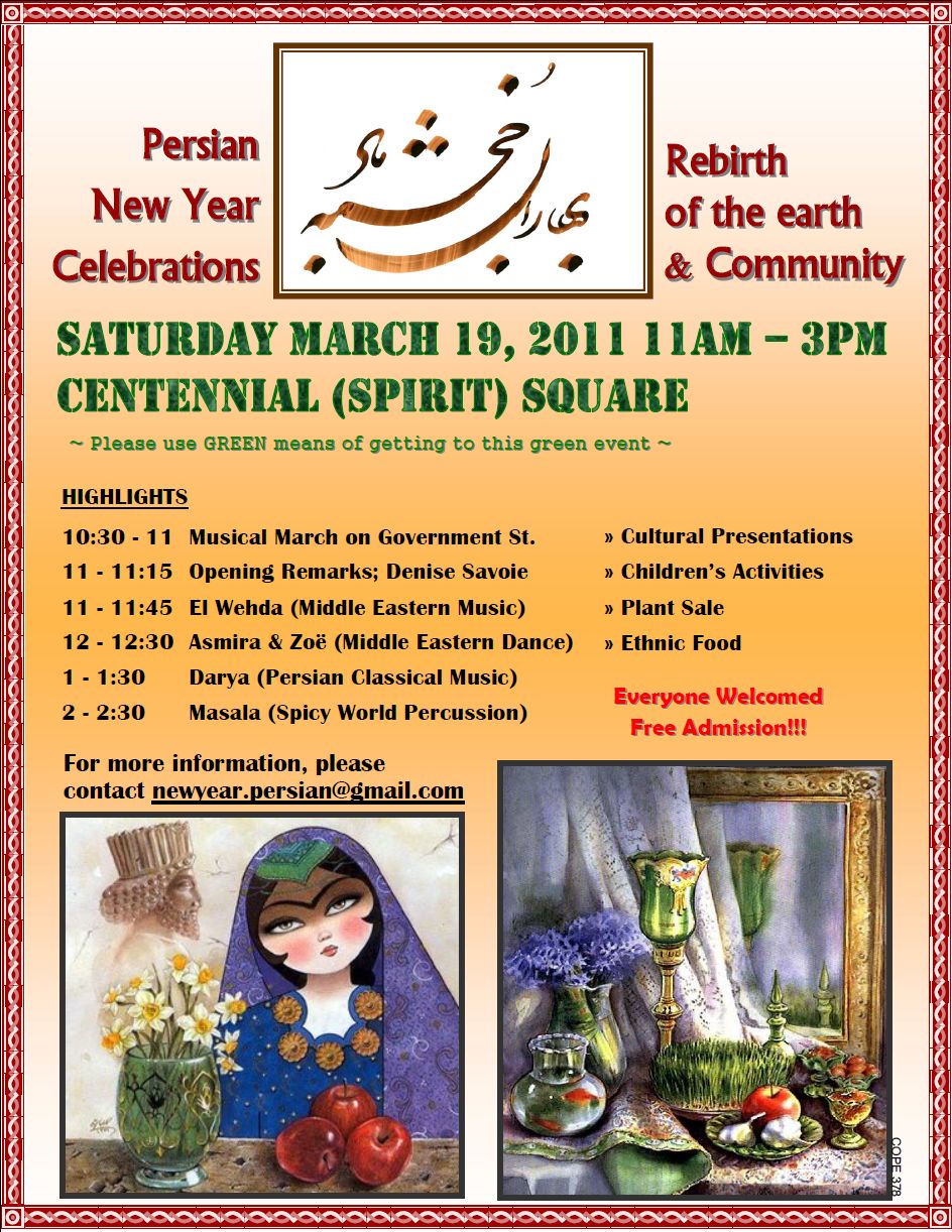 PERSIAN NEW YEAR (NOWRUZ) CELEBRATION Live music and dance performances by local artists, Iranian and Afghan arts and culture show, children’s play zone, plant sale, ethnic food and more in celebration of the rebirth of the earth and communion of families, friends, and neighbours in the most joyous time of the year.