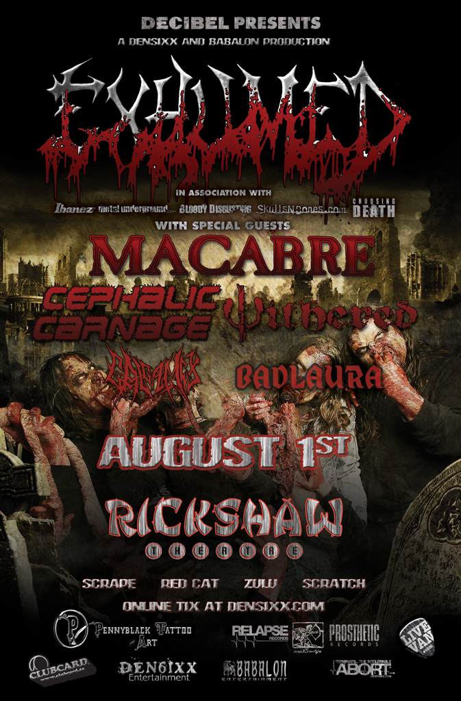 Filling out the tour as direct support, Vancouver favorites CEPHALIC CARNAGE return to the Rickshaw bringing their unique brand of death metal, as well as the Atlanta black/death metal act WITHERED.