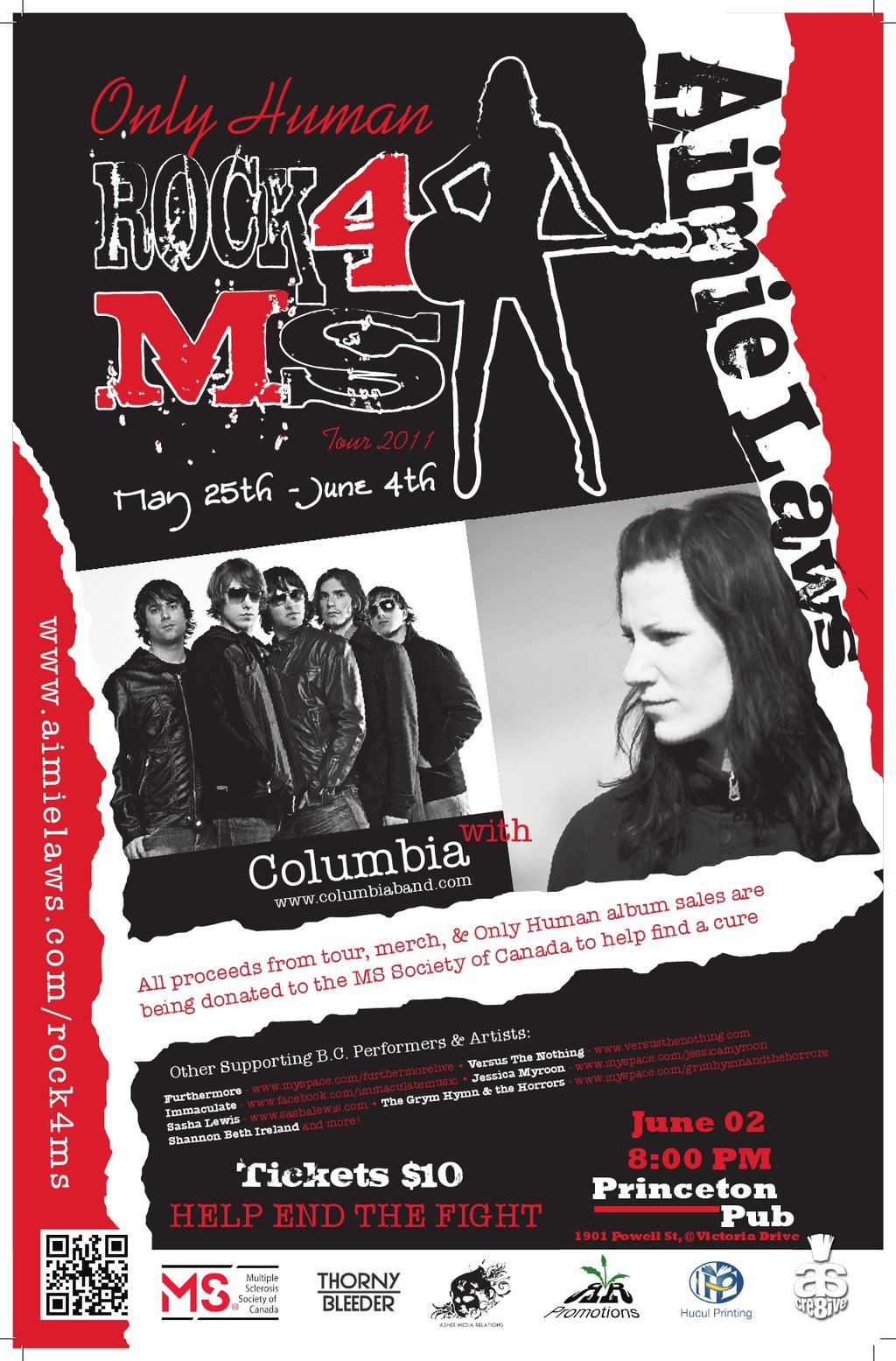 Rock for MS ** The ONLY HUMAN Tour May 25th – June 4th 2011: Aimie Laws , Columbia