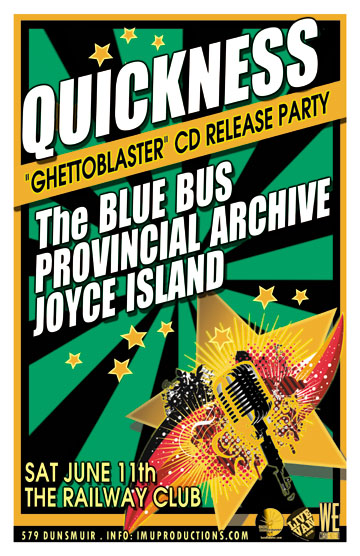 . Saturday, June 11th IMU presents QUICKNESS CD Release Party w/ The BLUE BUS, The PROVINCIAL ARCHIVE & JOYCE ISLAND @ The Railway Club, 579 Dunsmuir . 9pm / $10 cover @ the door