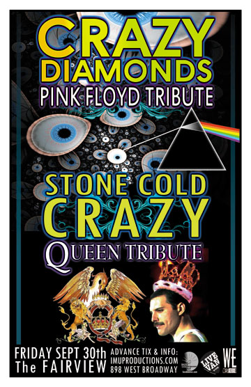 . Friday, September 30th IMU presents CRAZY DIAMONDS Pink Floyd Tribute & STONE COLD CRAZY Queen Tribute @ The Fairview, 898 West Broadway . Doors 8pm / Cover $10 . Purchase advance tickets online @ http//www.imuproductions.com/tix