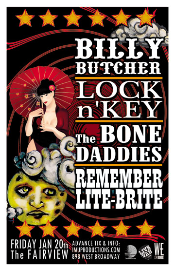. Friday, January 20th IMU presents BILLY BUTCHER, LOCK N' KEY, The BONE DADDIES & REMEMBER LITE-BRITE @ The Fairview, 898 West Broadway . Doors 8:30pm / Purchase advance tickets online @ http://www.imuproductions.com/tix