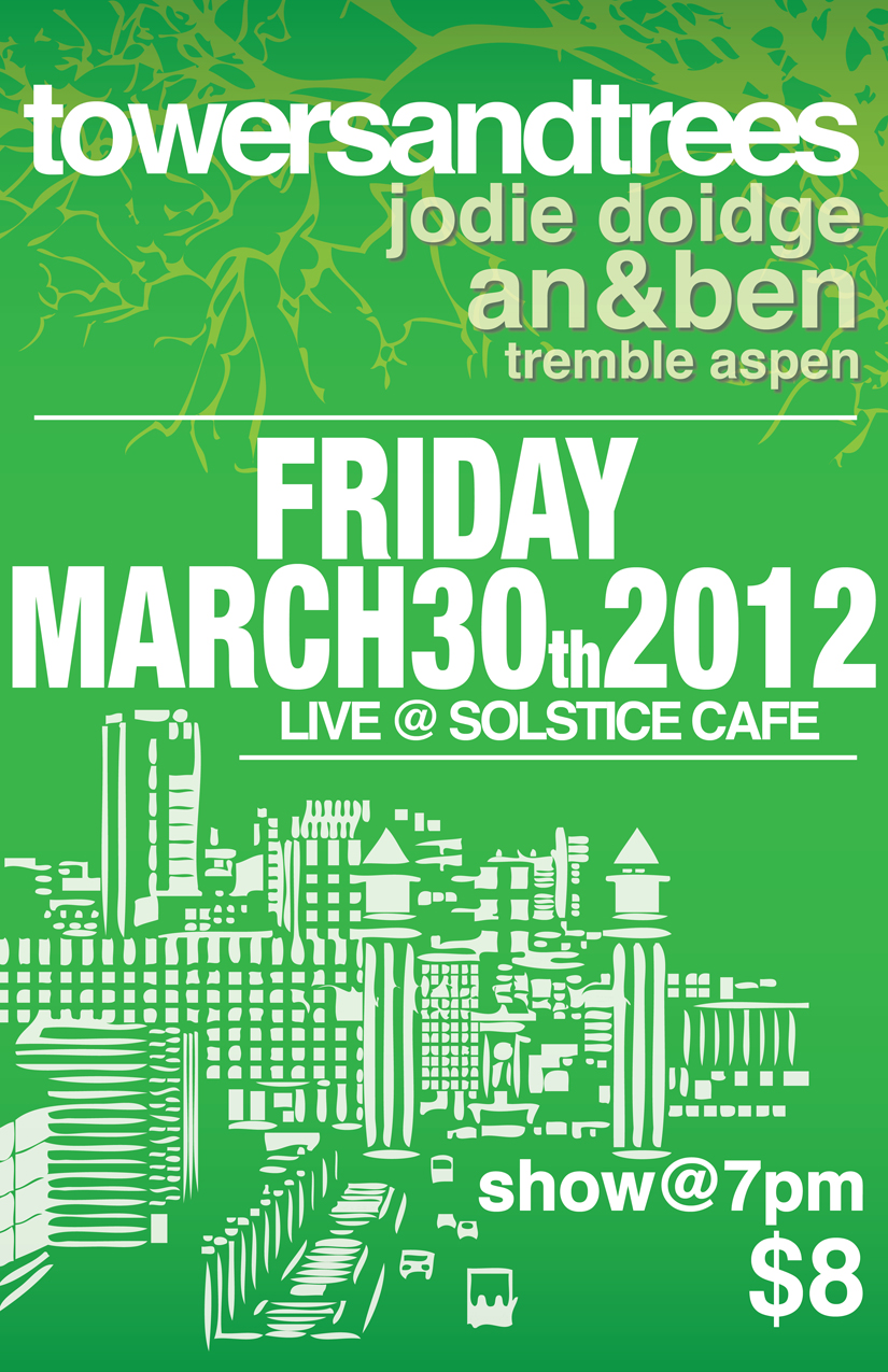 Towers and Trees, Jodi Doidge, An&Ben, Tremble Aspen @ The Solstice Cafe & Lounge Mar 30 2012 - Jan 2nd @ The Solstice Cafe & Lounge