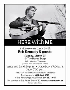 Here with Me Music Video Premiere & Benefit Concert: Rob Kennedy, The Simpson Brothers, Catrina Centanni, Joseph & The Familiar Strangers @ Revue Stage Granville Island Mar 25 2012 - Dec 18th @ Revue Stage Granville Island