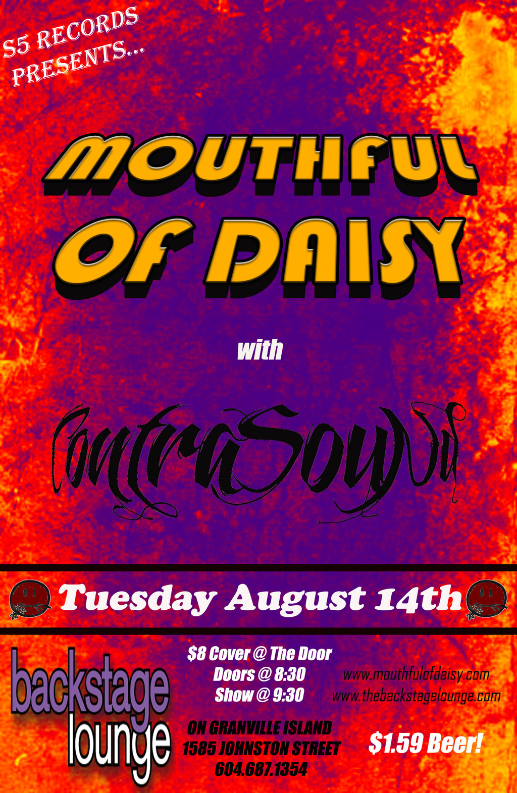 Mouthful Of Daisy are going to be tearing up the Backstage Lounge with their wicked new friends ContraSound on August 14!