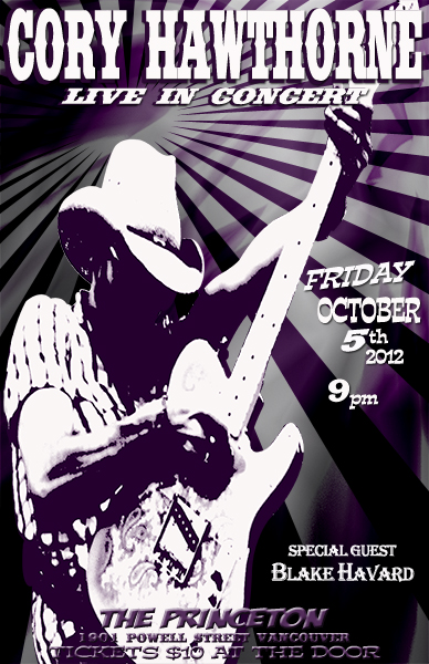 Canadian alt-country/roots singer, songwriter and guitar slinger Cory Hawthorne takes the stage at Vancouver's legendary Princeton Pub with his incredible band featuring Adam Gejdos (guitar, steel, dobro), Rob Becker (bass) and Pat Steward (drums).