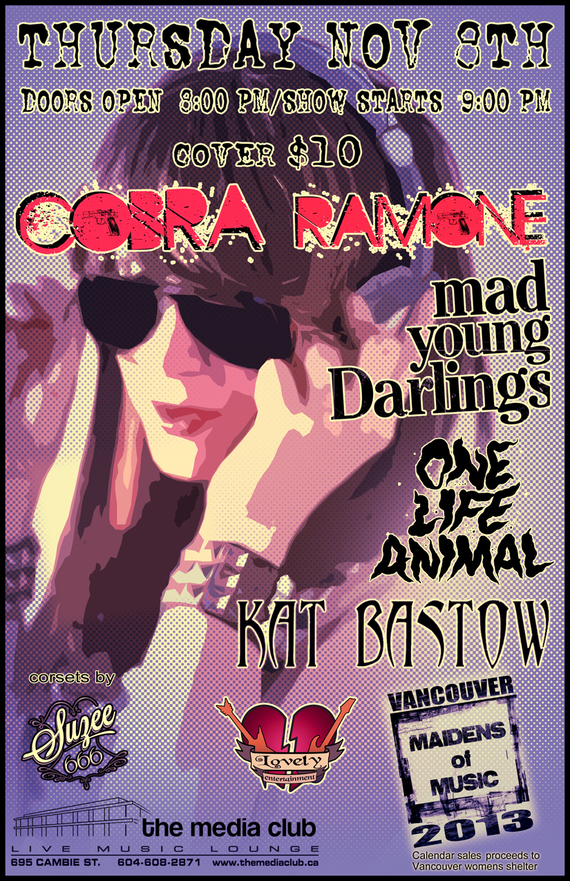 Calendars will be available to buy at the show for $10. They feature Vancouvers lovely lady musicians. It also features local corset designer Suzee 666. All proceeds from calendar sales donated to the Vancouver Womens Shelter.