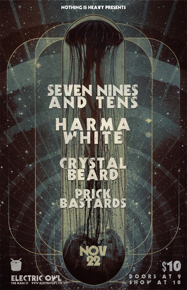 Seven Nines and Tens, Harma White, Crystal Beards, Prick Bastards @ Electric Owl Nov 22 2012 - Jan 10th @ Electric Owl