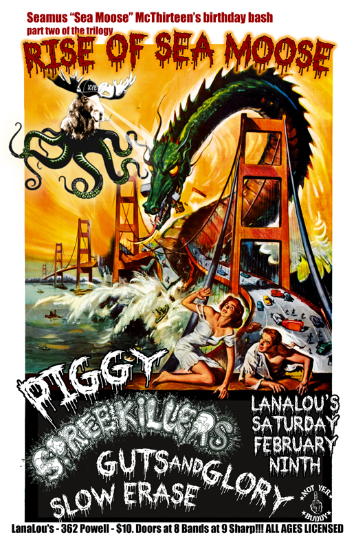 Piggy, Spree Killers  (Debut), Guts and Glory (CD Release), Slow Erase @ LanaLou's Feb 9 2013 - Jan 8th @ LanaLou's