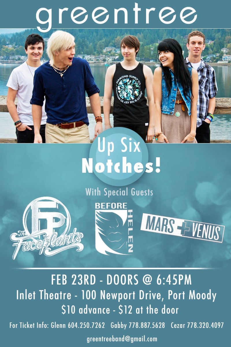 GreenTree, The Faceplants, Mars and Venus, Before Helen @ Inlet Theatre Feb 23 2013 - Feb 5th @ Inlet Theatre