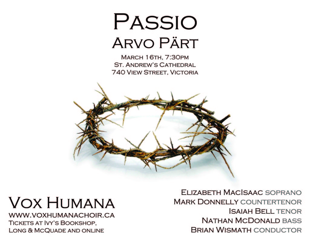 Arvo Pärt’s Passio: Vox Humana Chamber Choir @ St. Andrews Presbyterian Church Mar 16 2013 - Feb 22nd @ St. Andrews Presbyterian Church