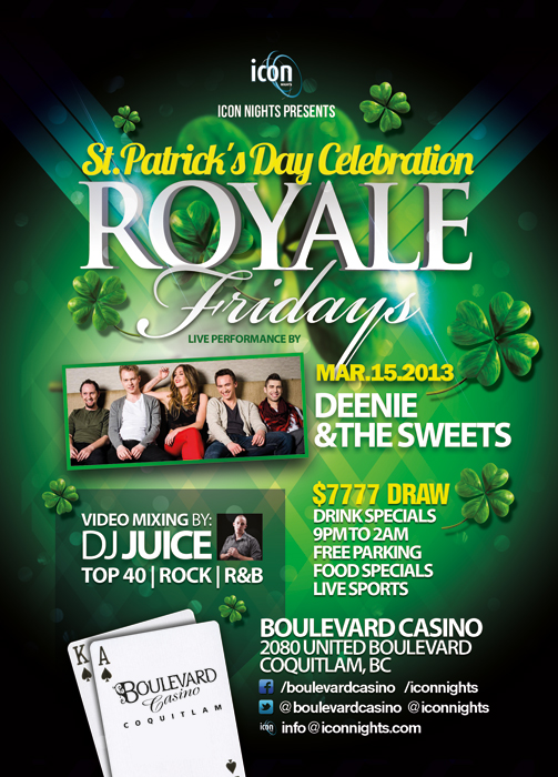 ST PATRICK'S CELEBRATION LIVE: Deenie & the Sweets, VIDEO DJ Juice @ Boulevard Casino (Harley-Davidson Stage) Mar 15 2013 - Feb 19th @ Boulevard Casino (Harley-Davidson Stage)