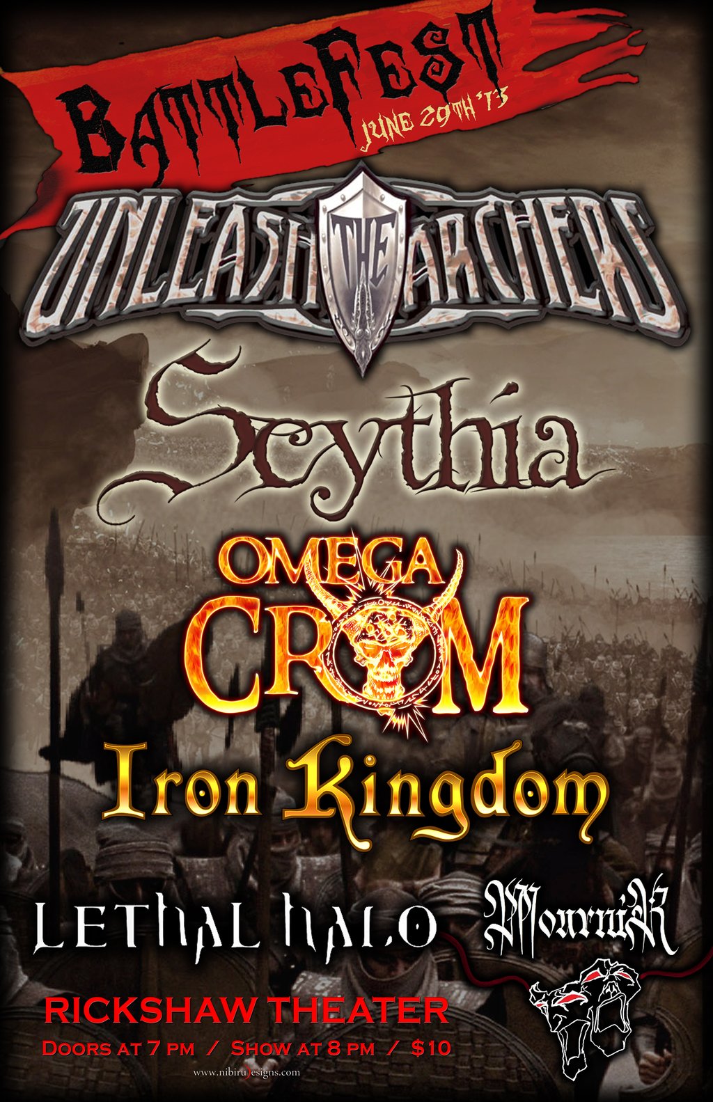 Unleash The Archers, Scythia, Omega Crom, Iron Kingdom, Lethal Halo, Mournir @ Rickshaw Theatre Jun 29 2013 - Feb 22nd @ Rickshaw Theatre